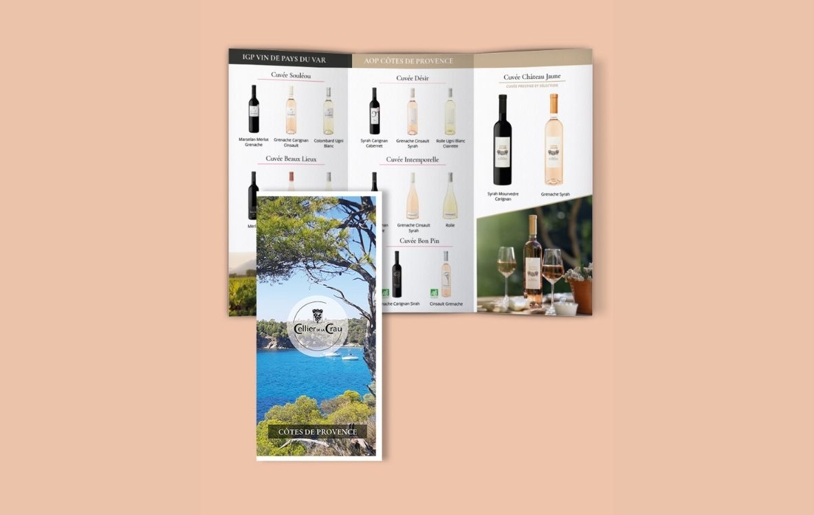 Nous avons eu le plaisir de concevoir un dépliant trois volets pour Le Cellier de La Crau, une cave mettant en avant une sélection raffinée de bouteilles. Ce support de communication a été pensé pour refléter l’authenticité et le savoir-faire du Cellier, tout en offrant une présentation élégante et attrayante de ses vins.