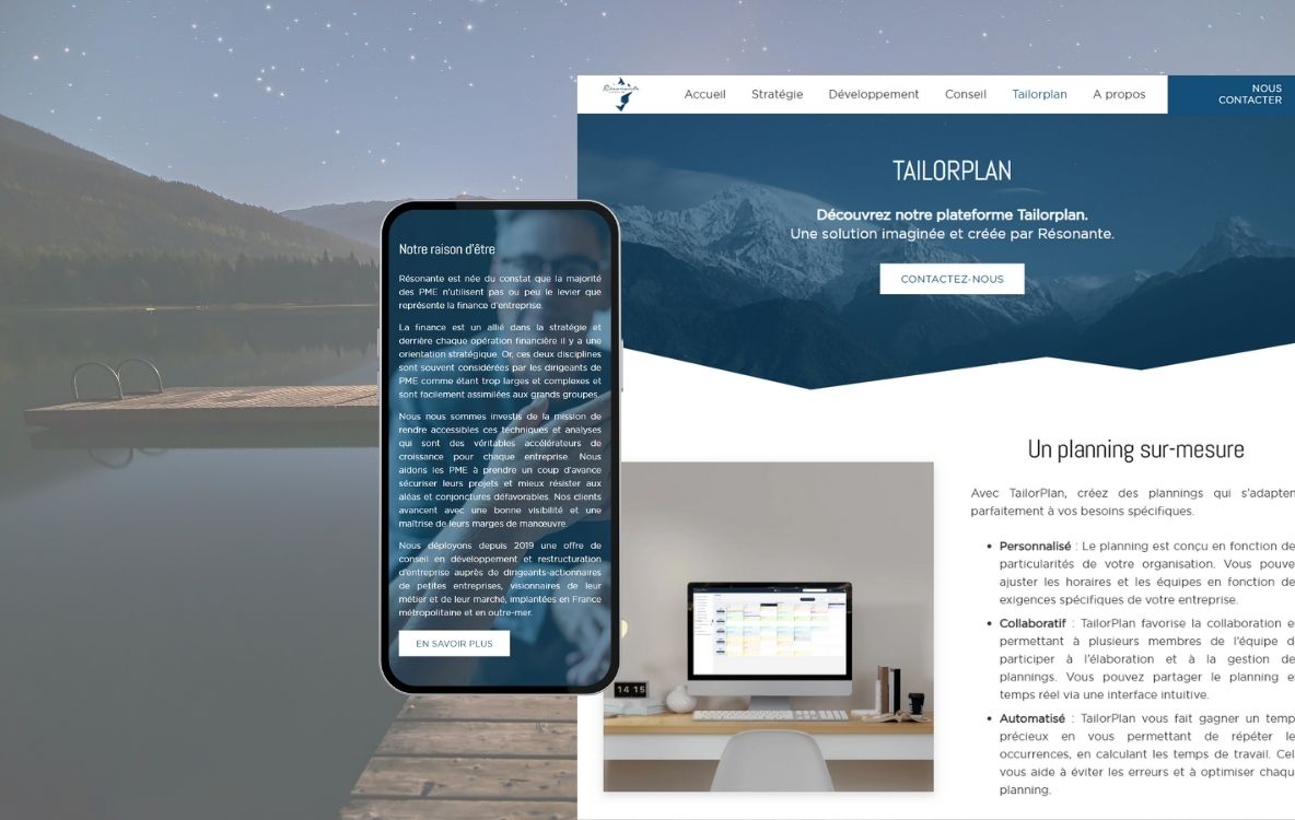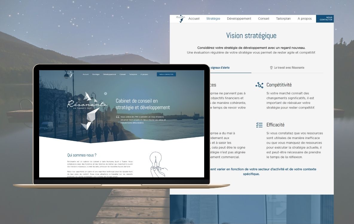 Le choix esthétique, basé sur des tons profonds et une ambiance sophistiquée, reflète parfaitement l’expertise de Résonante. L’agencement du site, fluide et moderne, met en lumière les services et la vision du cabinet, tout en renforçant leur identité unique. Chaque détail a été minutieusement travaillé pour capter l’attention des visiteurs tout en leur offrant une navigation simple et intuitive.