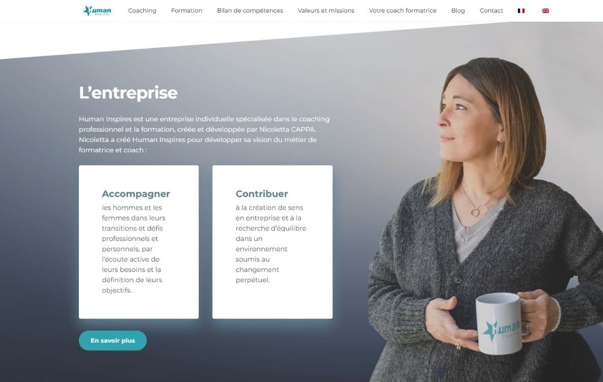 Nous avons le plaisir de vous présenter notre dernière création : la conception d’un site web vitrine pour Human Inspires, une société spécialisée dans le coaching, la formation et le bilan de compétences. Ce site est le reflet de l’identité inspirante et professionnelle de l’entreprise.