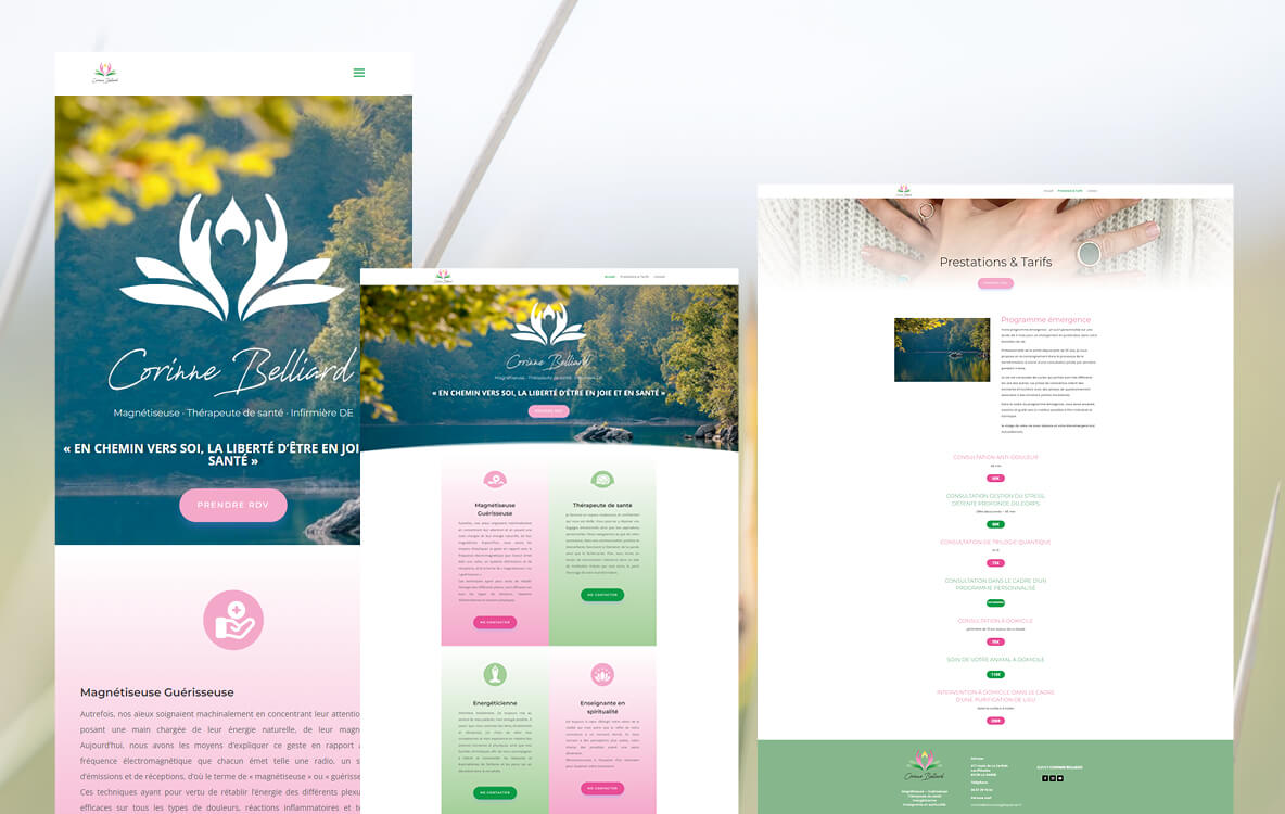 Le site internet de Corinne Belliard de santé vous invite à plonger dans l’univers apaisant des soins énergétiques. Grâce à une conception moderne et intuitive, les visiteurs peuvent explorer facilement les différentes offres de Corinne, allant des soins énergétiques personnalisés aux séances de rééquilibrage énergétique.