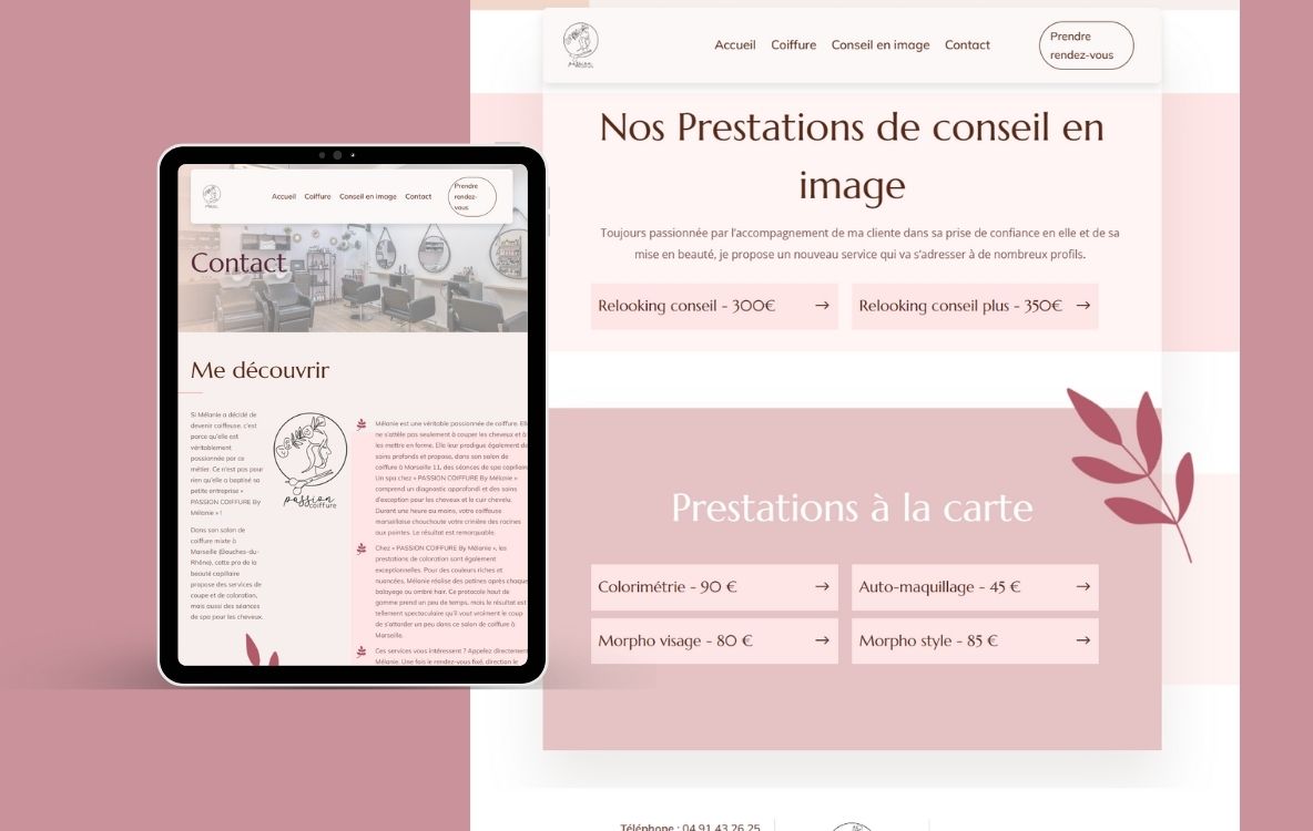 Conçu pour être à la fois ergonomique et esthétique, ce site offre une vitrine numérique moderne mettant en valeur les services et conseils en image proposés par Passion Coiffure. Grâce à une navigation intuitive et une présentation dynamique, les visiteurs peuvent découvrir facilement les différentes prestations offertes par le salon. La compatibilité avec tous les écrans garantit une expérience utilisateur optimale, quel que soit le dispositif utilisé. Nous exprimons notre gratitude à Mélanie pour sa confiance renouvelée et sommes impatients de continuer à soutenir Passion Coiffure dans sa présence en ligne.