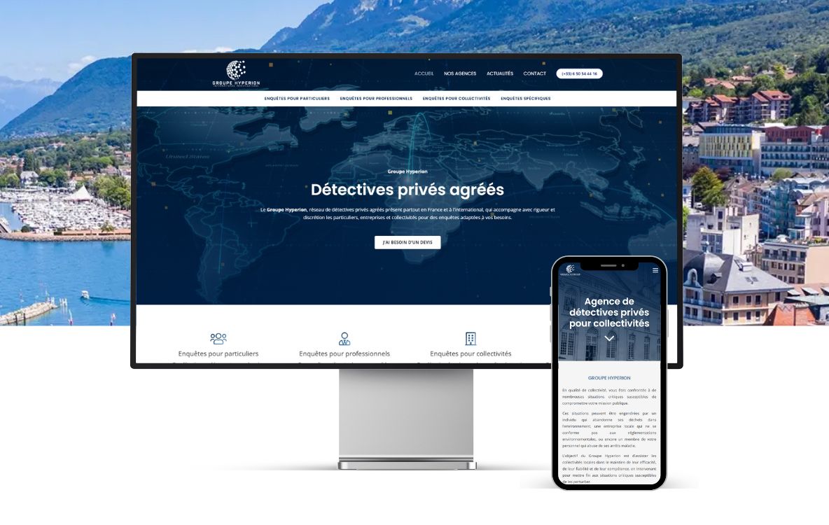 Nous avons eu le plaisir de concevoir le site web du Groupe Hyperion, un réseau de détectives privés agréés opérant en France et à l’international. Ce projet a été pensé pour refléter les valeurs fondamentales du cabinet : rigueur, discrétion et professionnalisme, tout en offrant une navigation fluide et intuitive.