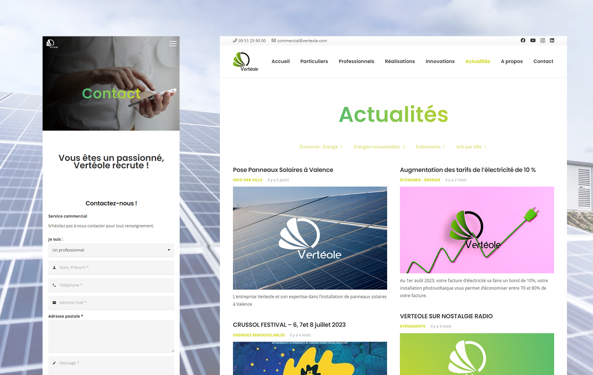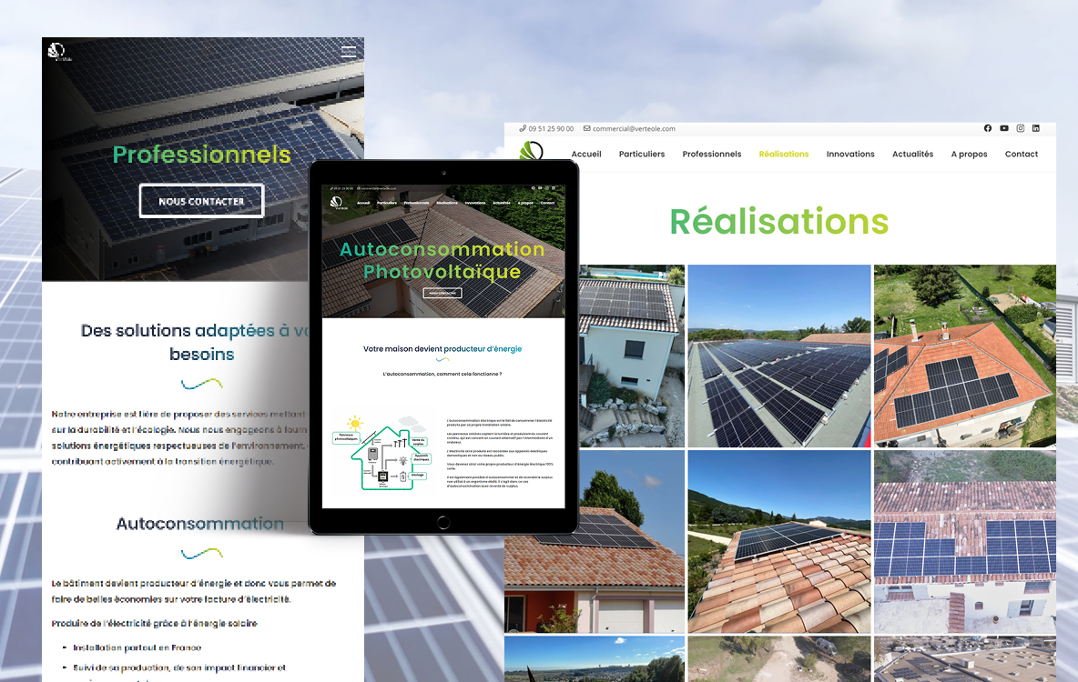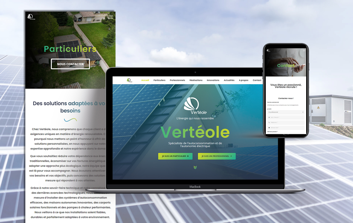 Notre agence de communication est fière de présenter notre dernier projet phare : le site web conçu sur mesure pour Vertéole, un spécialiste de l’autoconsommation et de l’autonomie électrique. Ce site incarne l’engagement de l’entreprise envers l’innovation, l’écologie, la durabilité et l’efficacité.
