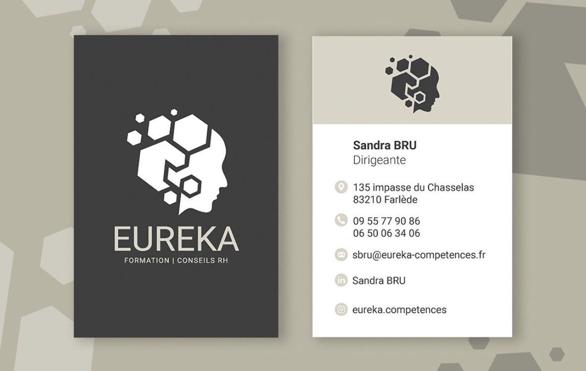 Ces cartes ne sont pas seulement esthétiques ; elles sont aussi conçues pour être fonctionnelles. Les informations de contact essentielles sont présentées de manière à faciliter la prise de contact et à laisser une impression durable. Grâce à ce support, Eureka renforce son image de marque, soulignant ses valeurs de confiance et de professionnalisme.
