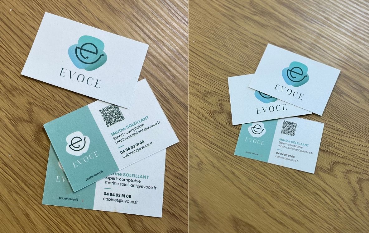 Nous sommes ravis de dévoiler les nouvelles cartes de visite pour Evoce, un cabinet d’expertise comptable.