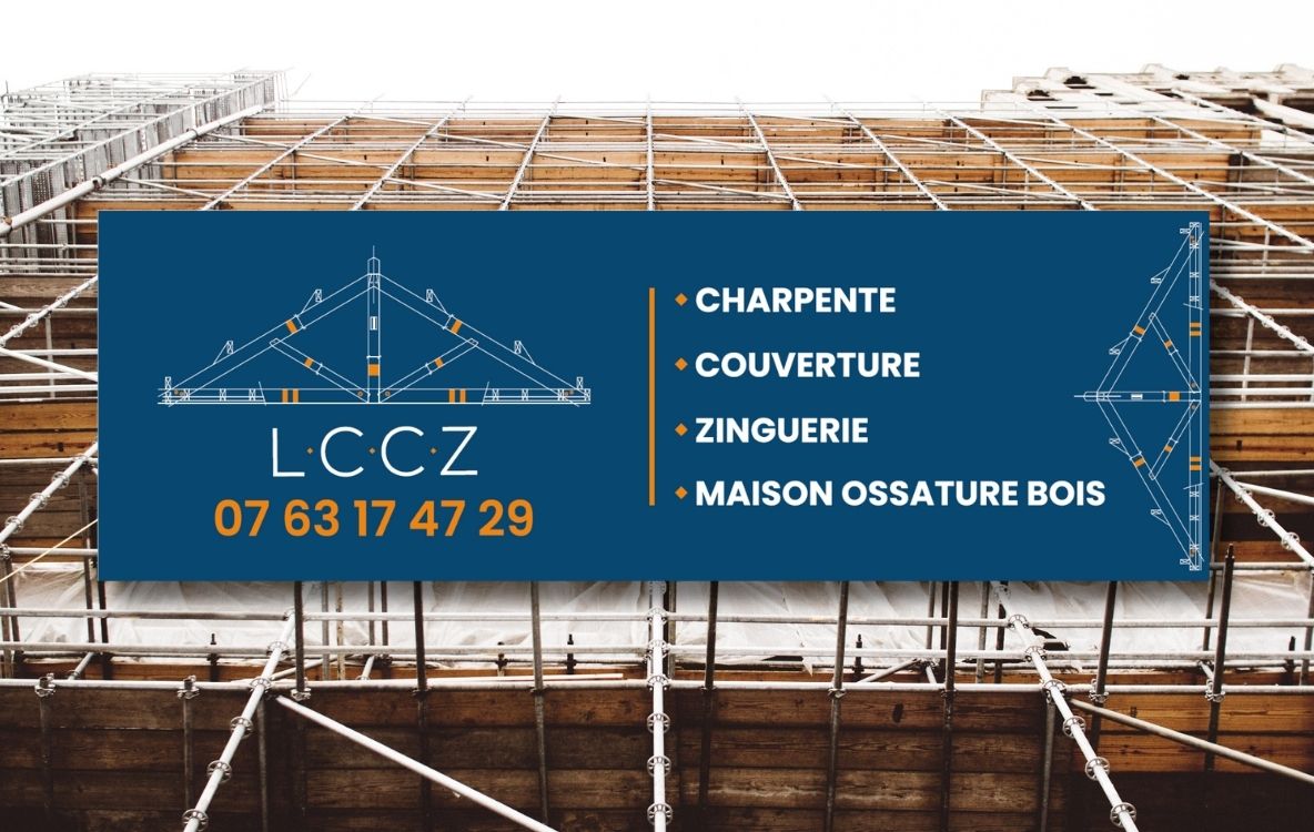 Les informations essentielles concernant les services offerts par LCCZ sont clairement présentées (charpente, couverture, zinguerie, maison ossature bois), facilitant ainsi la reconnaissance et la mémorisation de la marque. Grâce à cette bâche, LCCZ renforce son image de marque professionnelle. Elle incarne parfaitement les valeurs de l’entreprise : robustesse, expertise et fiabilité.