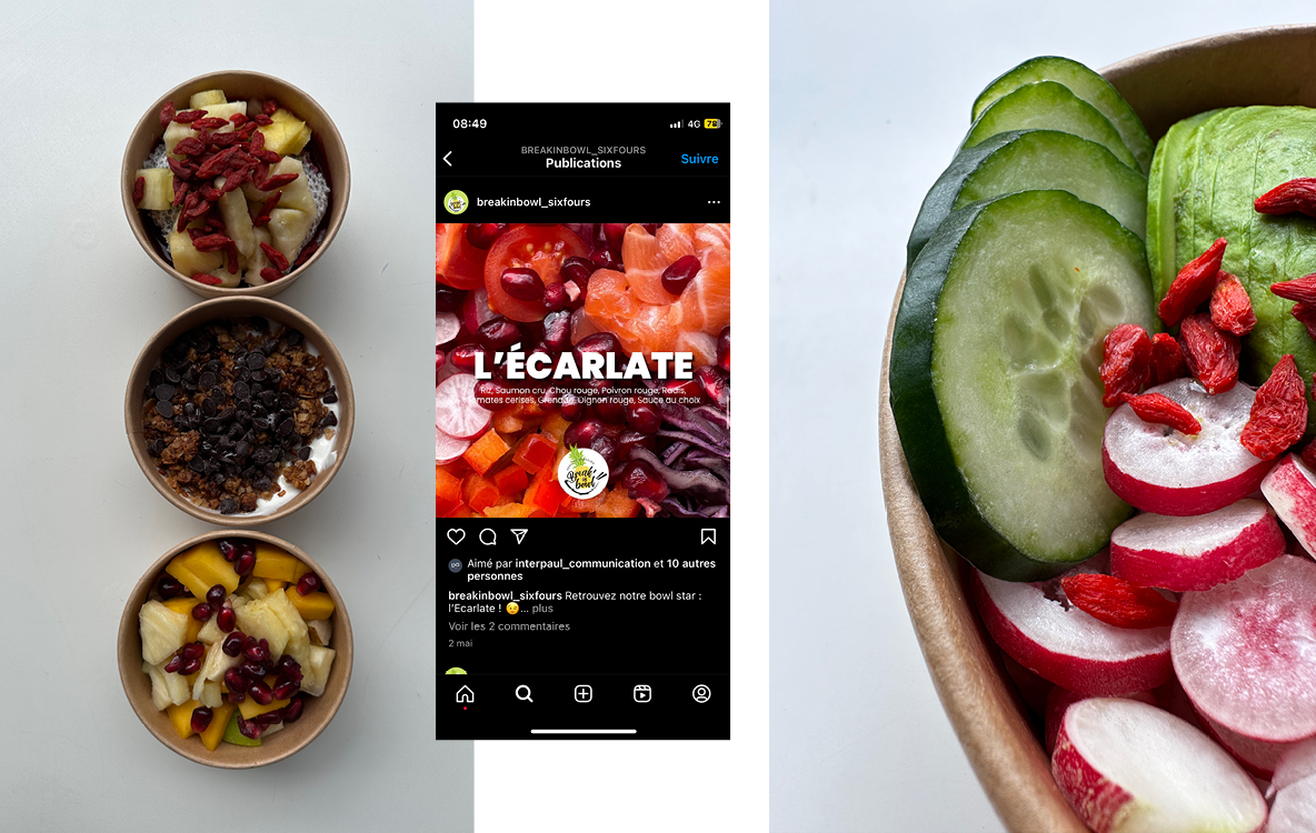 Interpaul présente un extrait de son savoir-faire sur les réseaux sociaux, en particulier pour les restaurateurs. Break’In Bowl a bénéficié de notre expertise : nous avons magnifié leurs plats alléchants en les présentant avec une touche artistique unique.